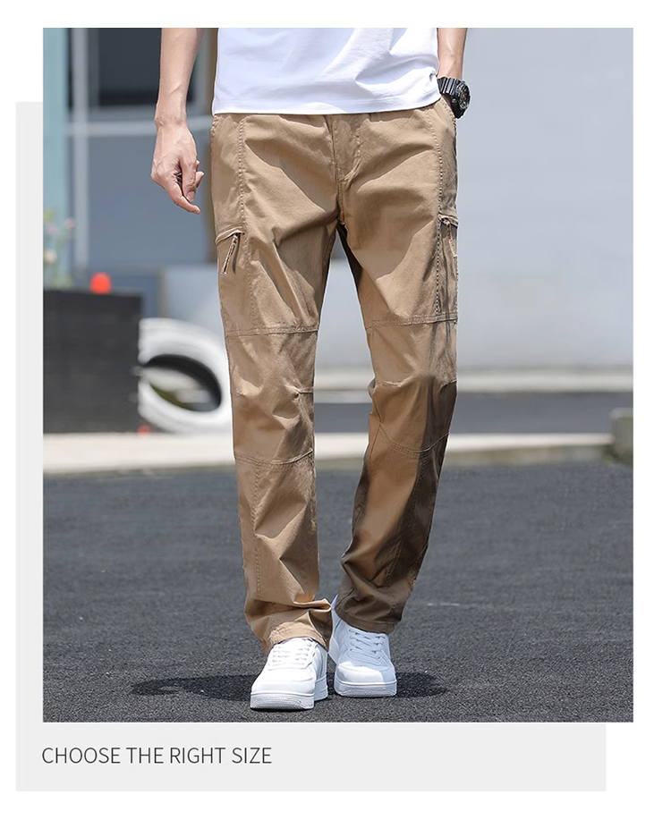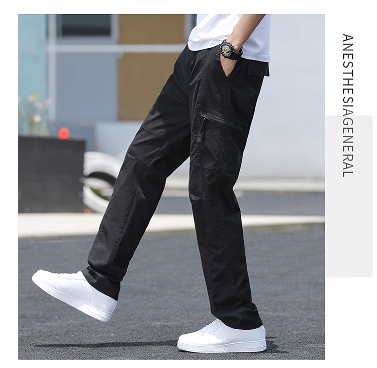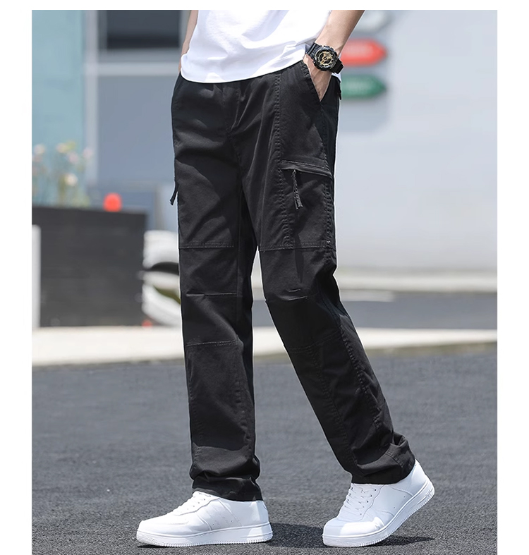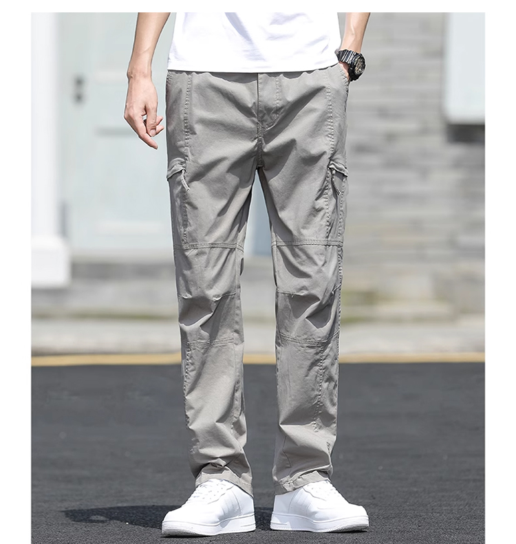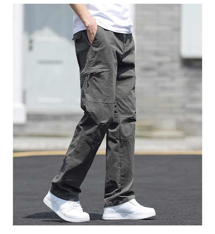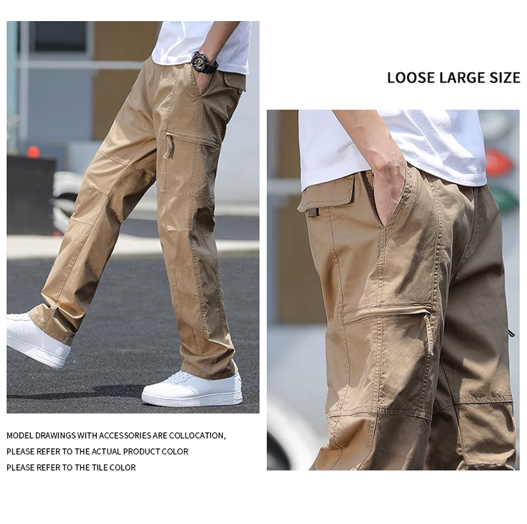 살찌고 남자 카고바지 와이드 일자 캐주얼 바지 멀티 포켓 춘추 카고바지 남